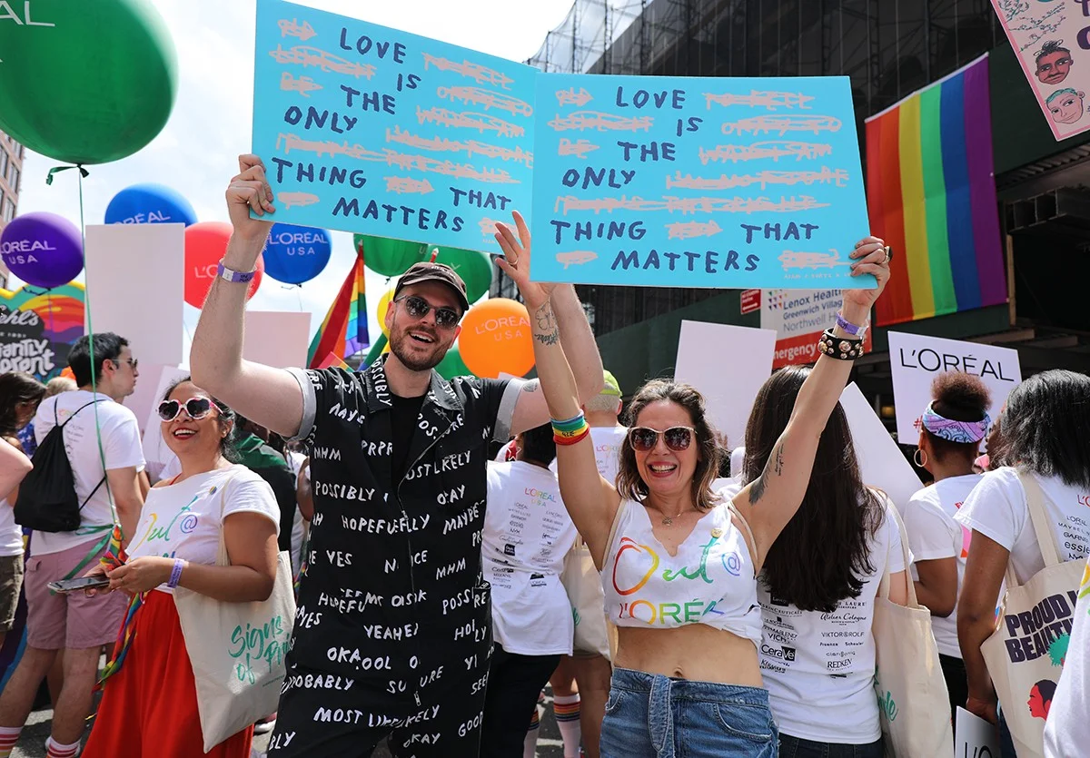 First, we captured their creative process, telling their stories and documenting their connection. Then, we hit the Pride March, chronicling their inspiring presence at the parade as the signs were carried by hundreds of L'OrΓ©al employees, their friends, and random parade goers.